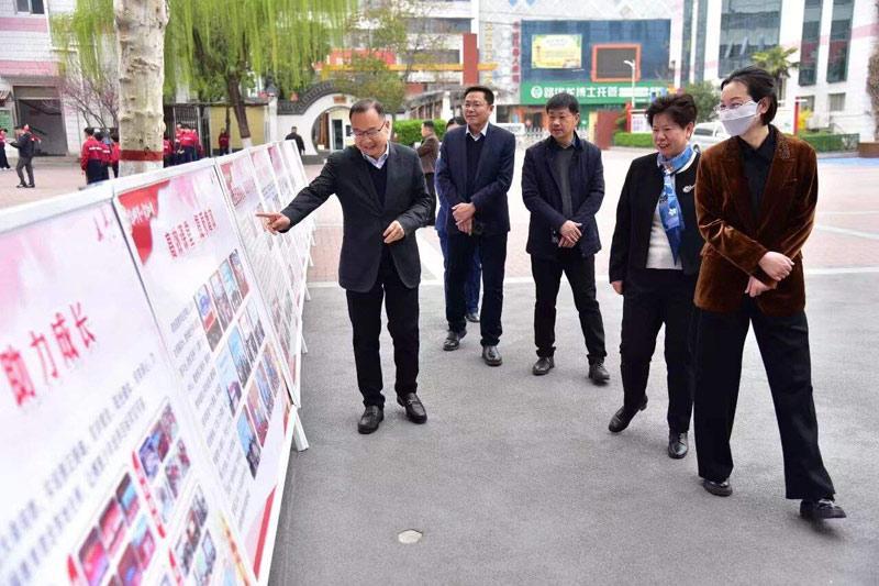 专家组在市第一实验小学观看教学成果展。 本报融媒体记者 吴先锋 摄